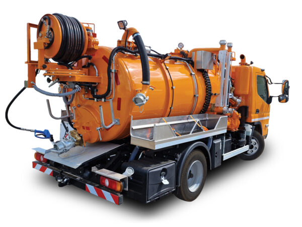 Der Aufbau ist auf einem Fahrgestell Mitsubishi Fuso Canter montiert. Fassungsvermögen des Abwassertanks ca. 3.200 Liter, der Wasserkammer ca. 1.000 Liter. Mit einem luftgekühlten JUROP-Kompressor mit einer Leistung von ca. 440 m3/h ausgestattet. Einer der Hauptvorteile des oben genannten Fahrzeugs besteht darin, dass der gesamte Tank als Wasserkammer verwendet werden kann (indem der Abwassertank speziell mit dem Wassertank verbunden wird). Die hydraulisch angetriebene Hochdruckhaspel mit 60 m Schlauch DN 16 ist um 90 Grad nach links und rechts schwenkbar und erleichtert so die Arbeit des Bedieners. Hinzu kommt eine Hochdruckpumpe mit einer Förderleistung von ca. 93 l/min bei 170 bar – die Kanalreinigung wird einfacher. Die Vakuumpumpe (Kompressor) und die Hochdruckpumpe können gleichzeitig arbeiten, was die Möglichkeiten des oben genannten Fahrzeugs erweitert. Die Funktionen werden über 2 Bedienfelder im Heck des Fahrzeugs und über Funk gesteuert.