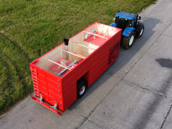 Der Behälter muss mit einem Schlepper mit einer Mindestmotorleistung von 50 PS transportiert werden. Für den Behälter ist eine untere Kupplung mit einem Durchmesser von 50 mm und einer Höhe von 400 mm vorgesehen.