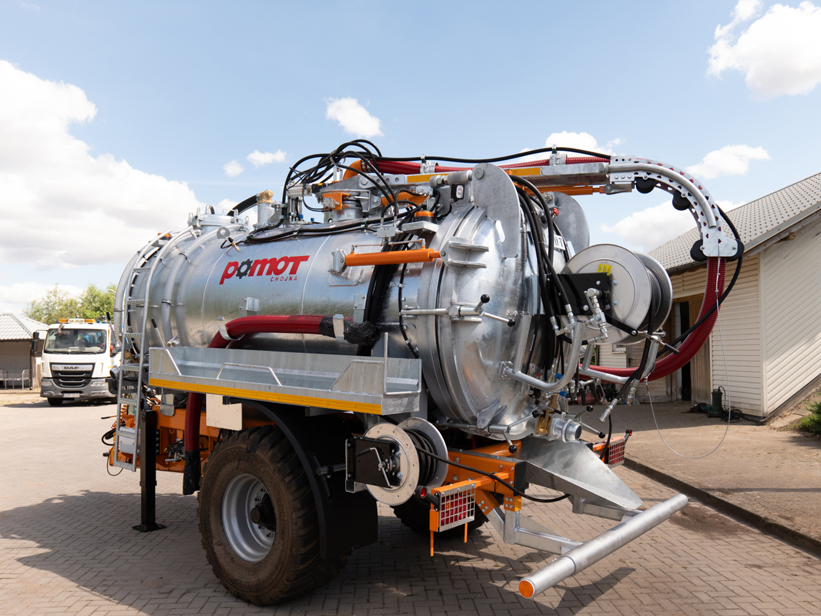 Hydraulischer Hochdruck-Schlauchaufroller | Wird mit einem 50 m langen 3/4 ” Schlauch am hinteren Boden angebracht |