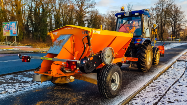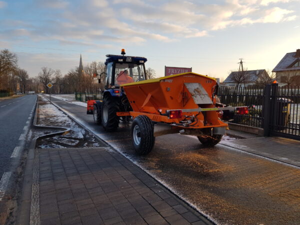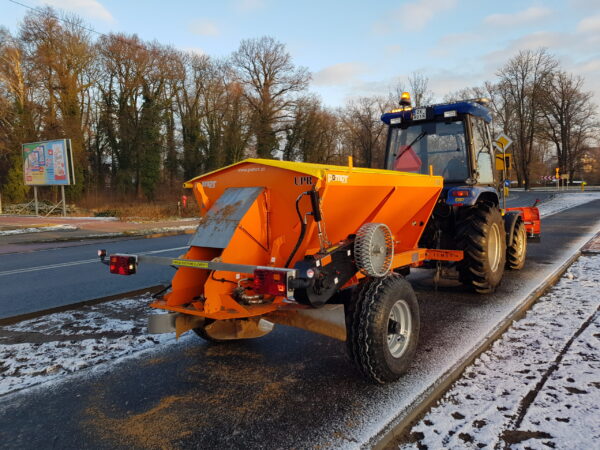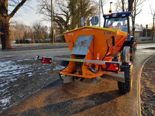 ● Mechanischer Antrieb des Kettenförderers – Untersetzungsgetriebe vom Kettenrad zur Kette, sodass trotz Geschwindigkeitsschwankungen die Streugutmenge auf den Streutellern konstant bleibt