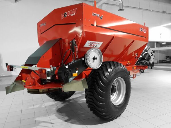 - Antrieb des Kettenförderers durch das 3-Gang-Getriebe, das den Antrieb vom Laufrad auf die Kette überträgt, garantiert eine konstante Fördermenge unabhängig von der Fahrgeschwindigkeit