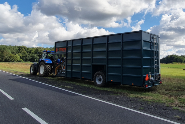 Le conteneur doit être transporté par un tracteur agricole avec une puissance moteur minimale de 50 CV. En bas le conteneur est équipé d’un crochet d’attelage – d’un diamètre de 50 mm et est situé à une hauteur de 400 mm