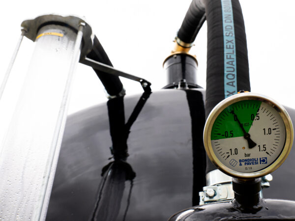 - La tubulure de vidange principal dans la trappe arrière 6 ̎ -avec vanne hydraulique 6 ̎