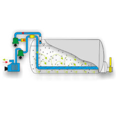 Automatyczne mieszanie gnojowicy podczas jej wylewania.