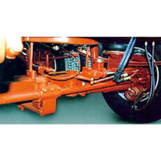 Mechaniczny układ sterujący skrętem tylnej osi. Wymaga podłączenia i ciągłego przepływu oleju z pompy ciągnika.
