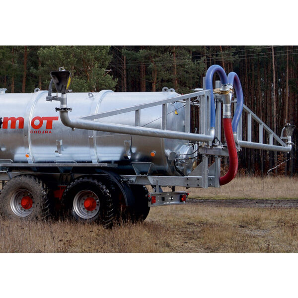 Wyposażony w 2 miotacze gnojowicy, każdy o zasięgu 15m. Wylatująca gnojowica napędza obrotową głowę miotacza powodując jej obrót z jednej strony na drugą. Dysze rozlewacza posiadają możliwość regulacji szerokości pracy.