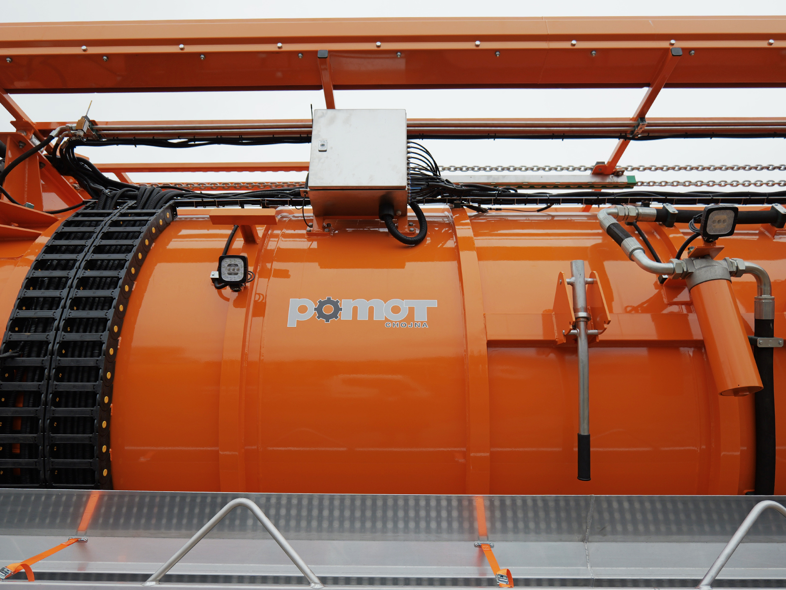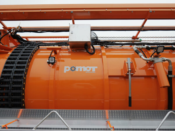 Насос високого тиску з продуктивністю 70 л/хв при 130 бар, у поєднанні з котушкою високого тиску та шлангом DN 13, довжиною 60 м, дозволяє проводити очищення каналізації одночасно з відкачуванням відходів через касету.